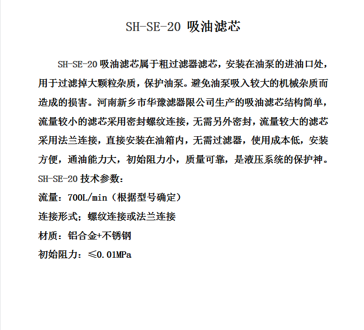 韓國SHC吸油濾芯SH-SE-20