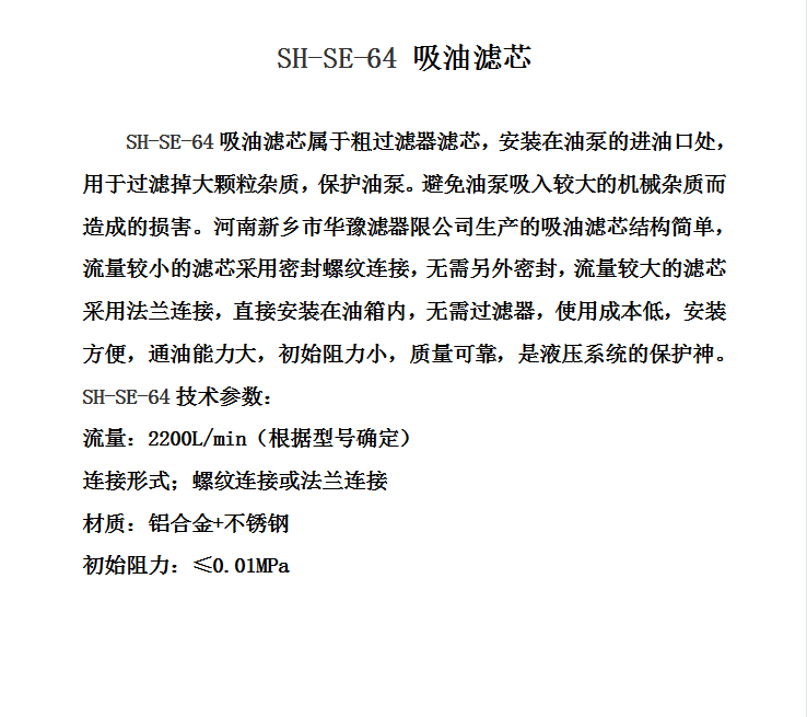 韓國SHC吸油濾芯SH-SE-64