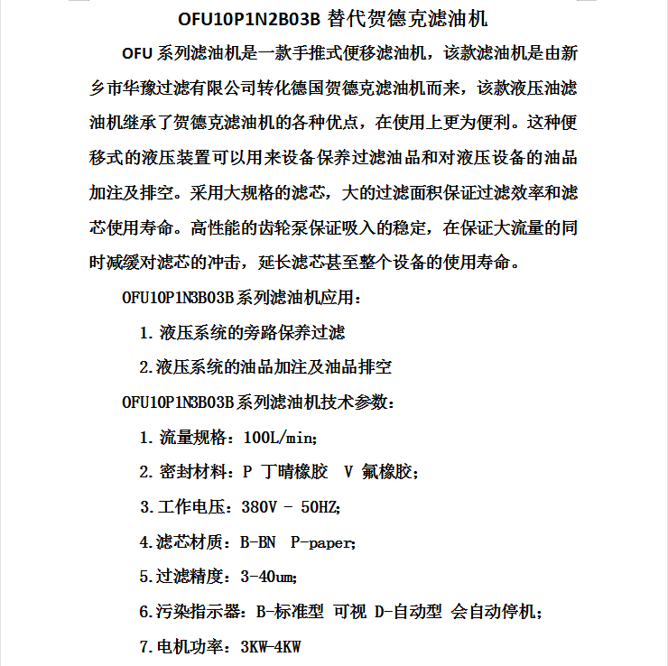 賀德克濾油機OFU10P1N2B03B