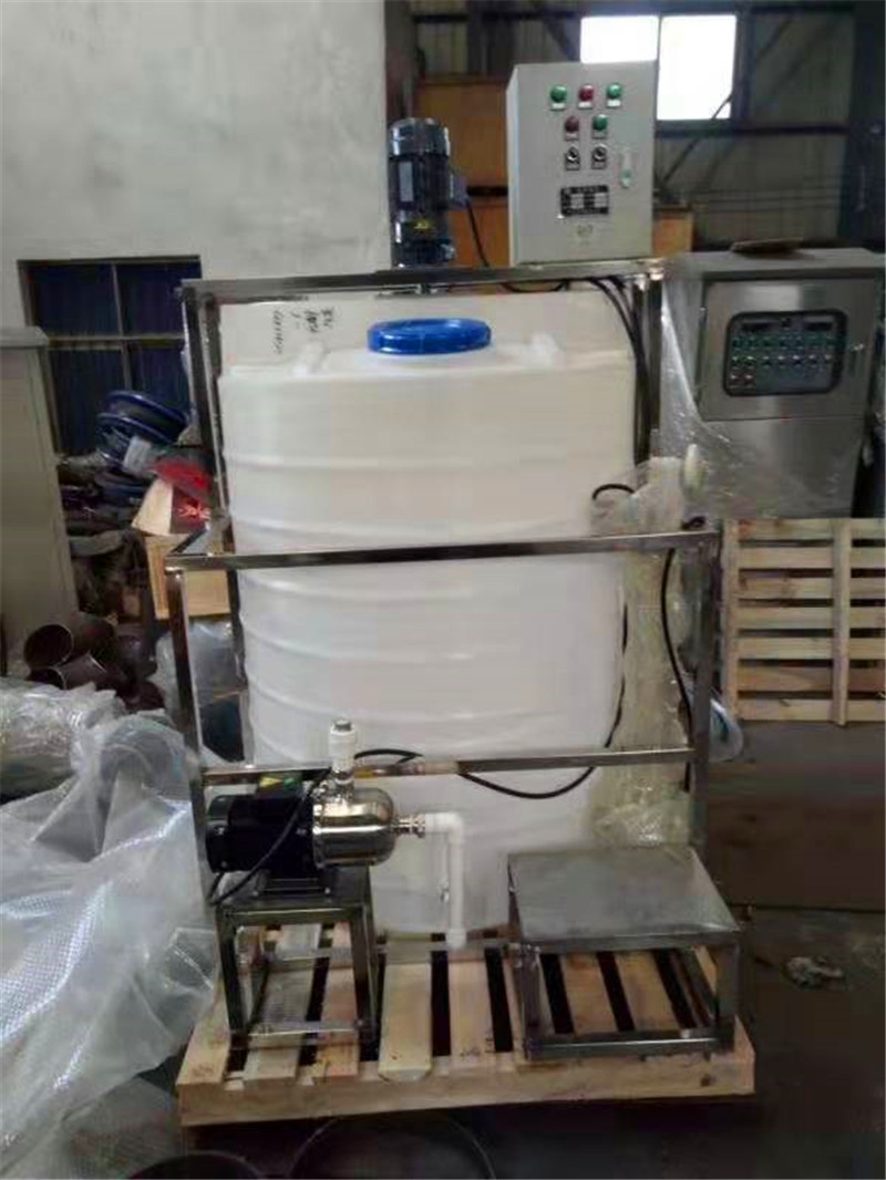 自動加藥裝置,主要有溶液箱、攪拌機、計量泵、Y型過濾器、安全閥、背壓閥、止回閥、脈沖阻尼器、水位表、壓力表、控制柜、安裝平臺等組成一體化安裝在一個底座上。用戶只需將組合式加藥裝置安放在加藥間,將加藥管接好接通電源即可啟動投入運行,在運行過程中自動檢測流體的酸堿度智能判斷并加投相應的藥液,這種工廠化的整套裝置,可大大減少設計和現場施工的工作量,基本實現無人看管,對整機的質量、安全和現場投運提供了可靠的保證。